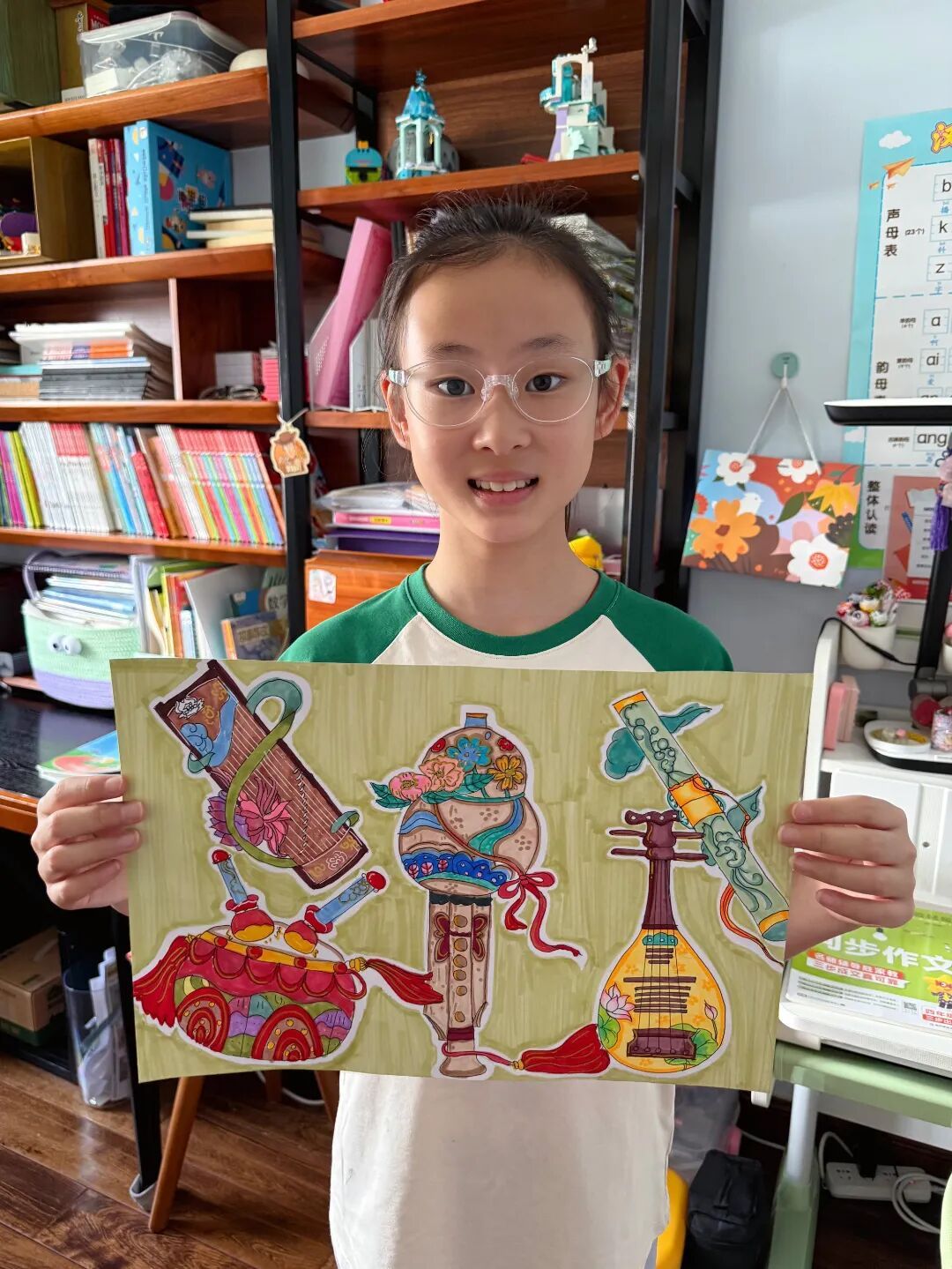 中年级的同学们变身成为小音乐家,制作乐器图卡、学唱长辈童年歌谣、还有的同学能分析流行歌曲的曲式结构呢!