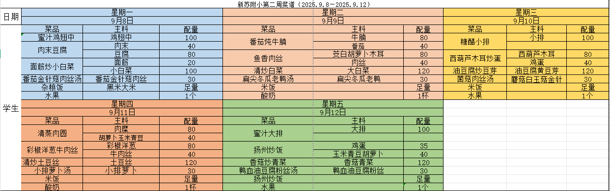 2025-2026学年(上)第二周菜单