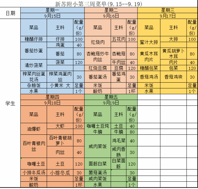 2025-2026学年(上)第三周菜单
