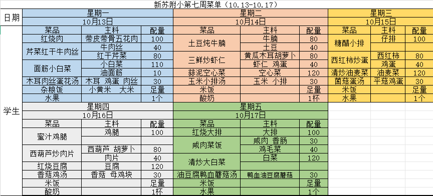 2025-2026学年(上)第七周菜单