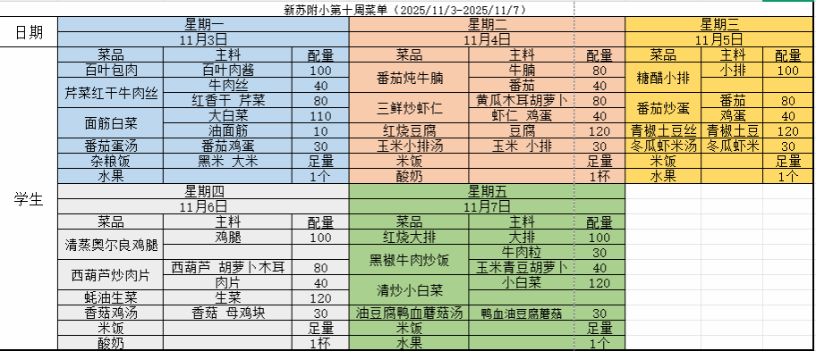 2025-2026学年(上)第十周菜单