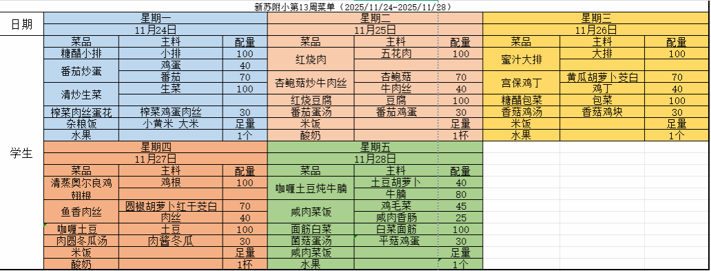 2025-2026学年(上)第十三周菜单