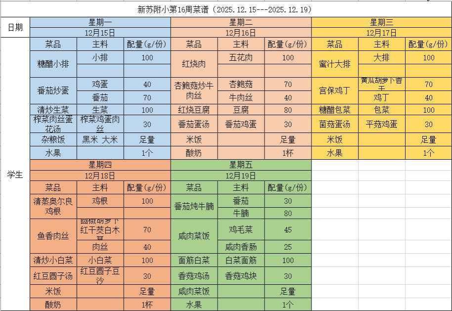 2025-2026学年(上)第十六周菜单