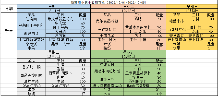 2025-2026学年(上)第十四周菜单
